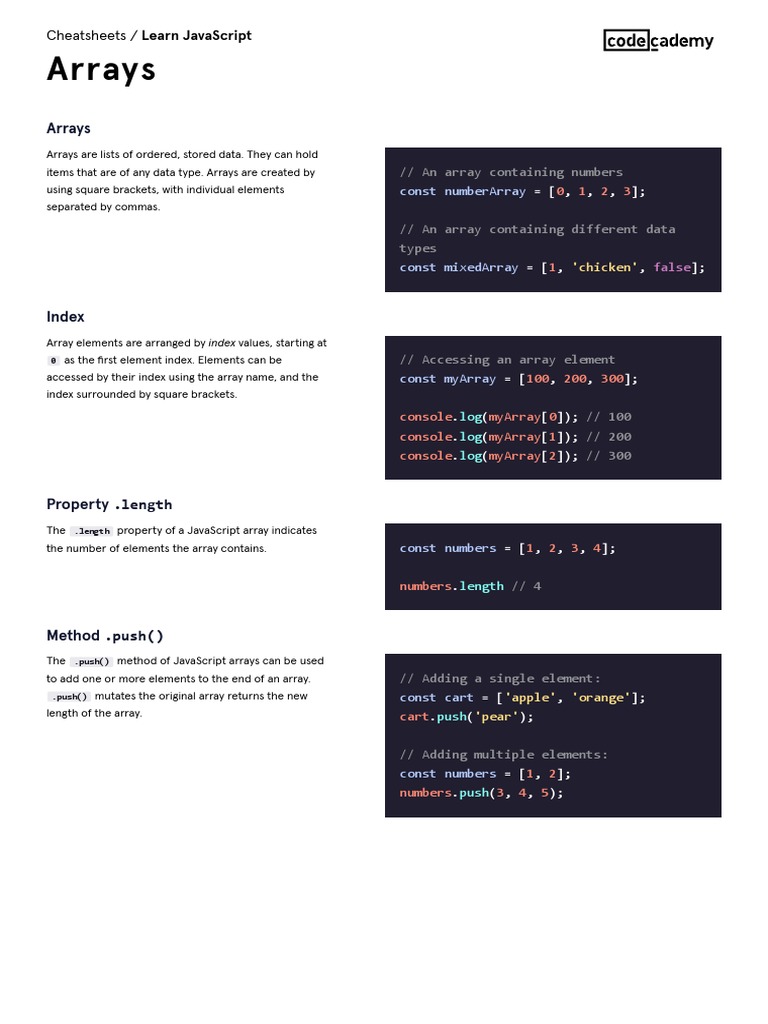 Learn JavaScript_ Arrays Cheatsheet _ Codecademy | PDF | Java Script ...