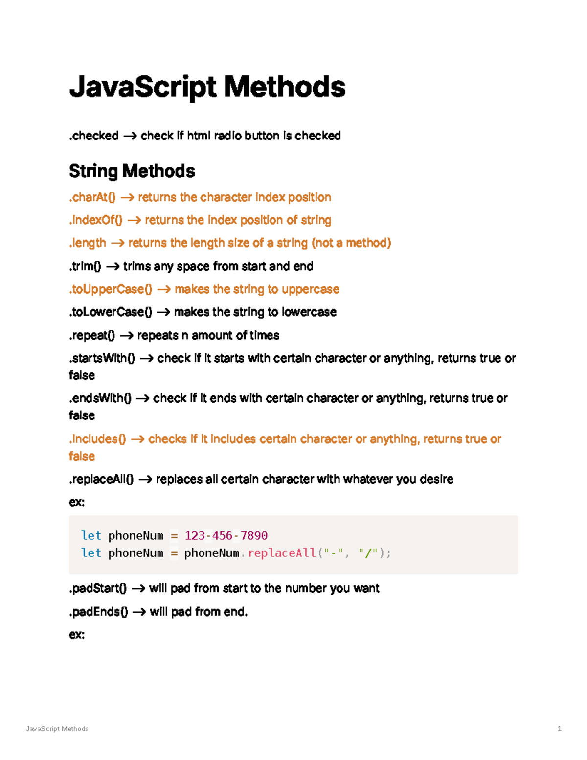 JavaScript Methods Overview: String & Radio Button Checks - Studocu