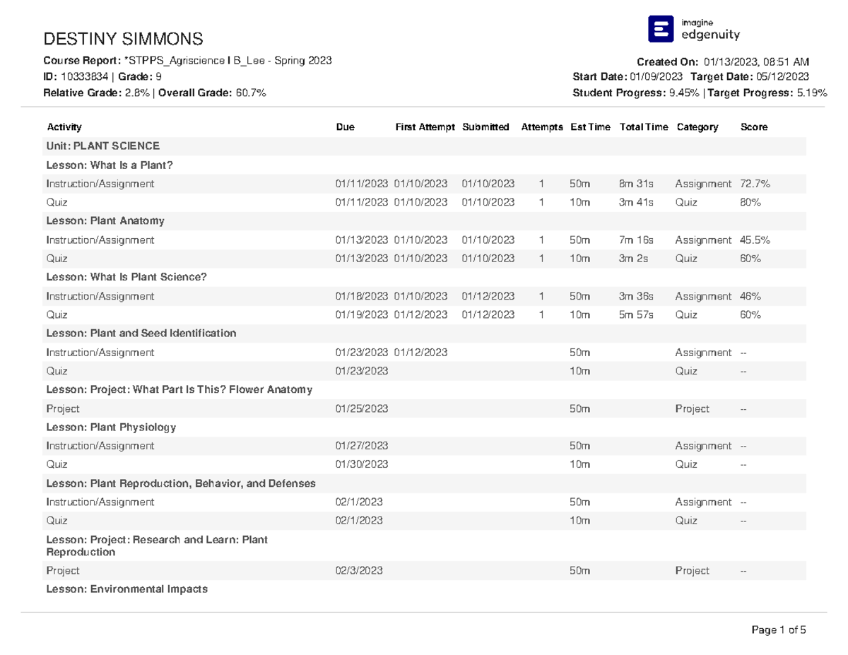 Course Report 01 13 2023 Simmonsdestiny Stpps Agriscience IB Lee-Spring ...