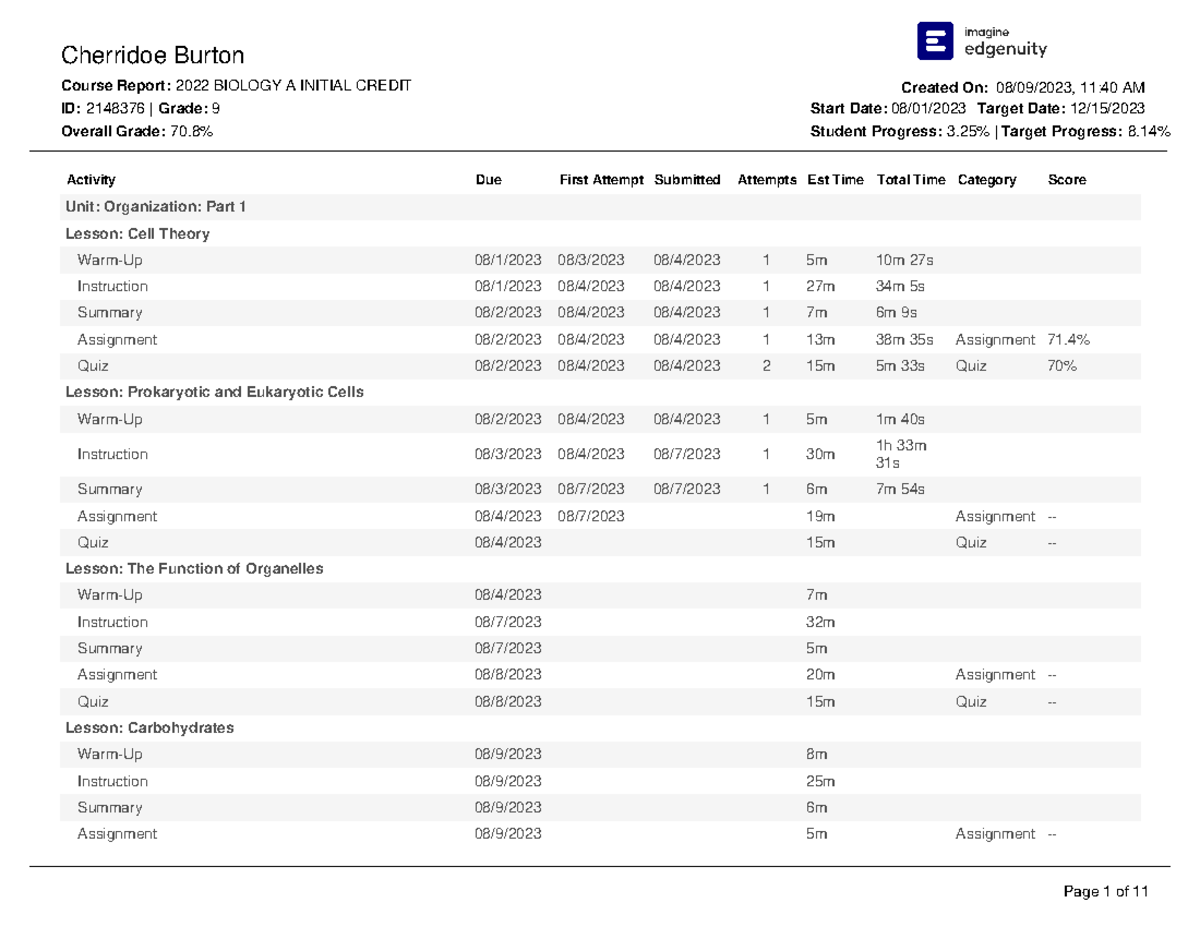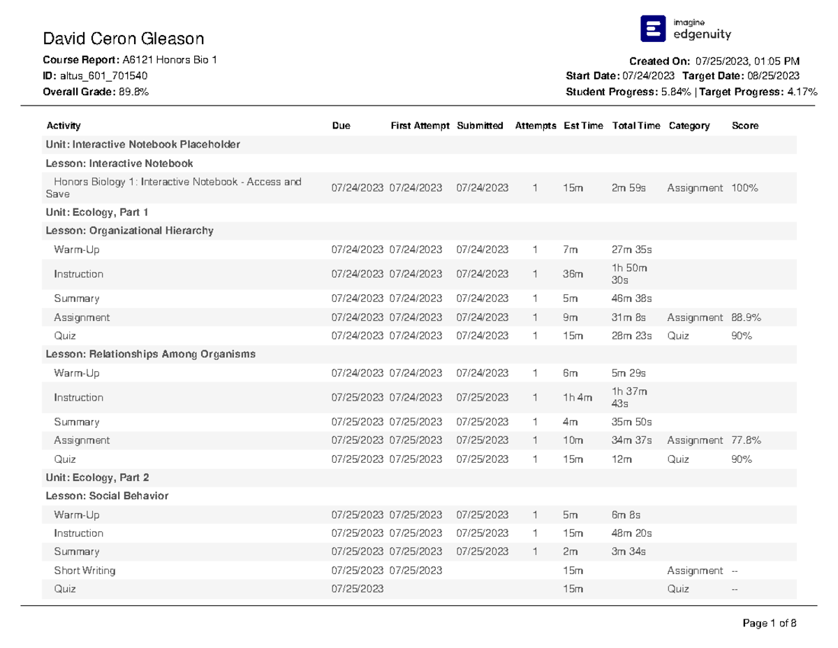 EdgeEX — Understanding the student Course Report – Edgenuity