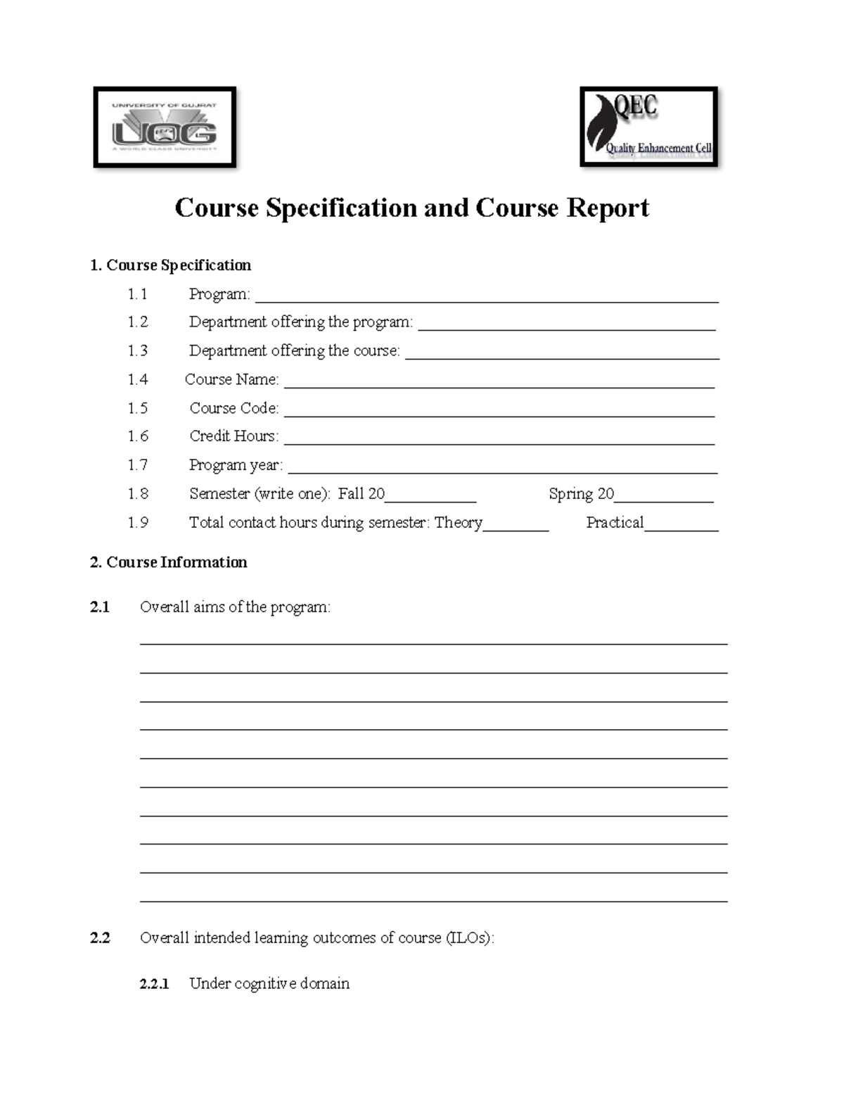 Course Specification and Course Report - Course Specification 1 Program ...
