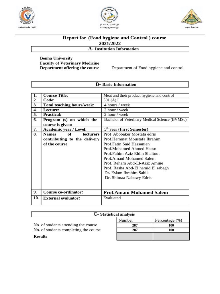 Meat Hygiene Course Report 2021-2022 (1st Term) | PDF | Health Sciences ...