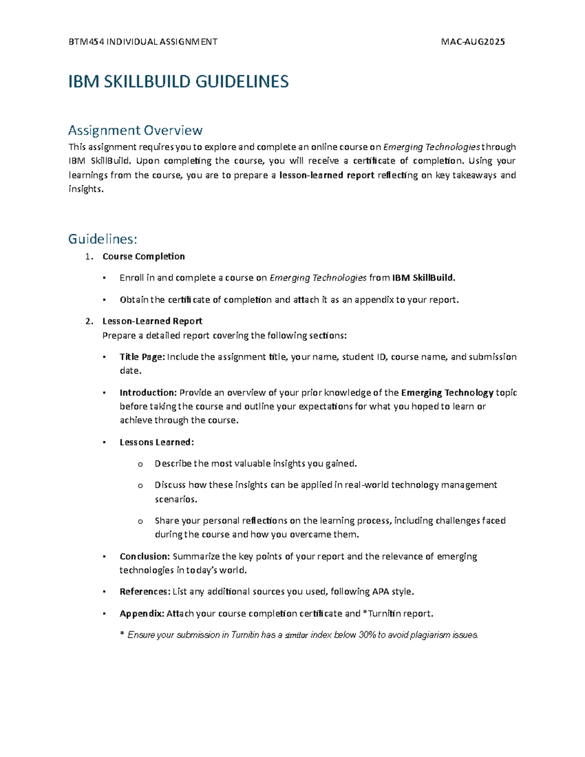 BTM454 Individual Assignment: IBM SkillBuild Course Report Guidelines ...