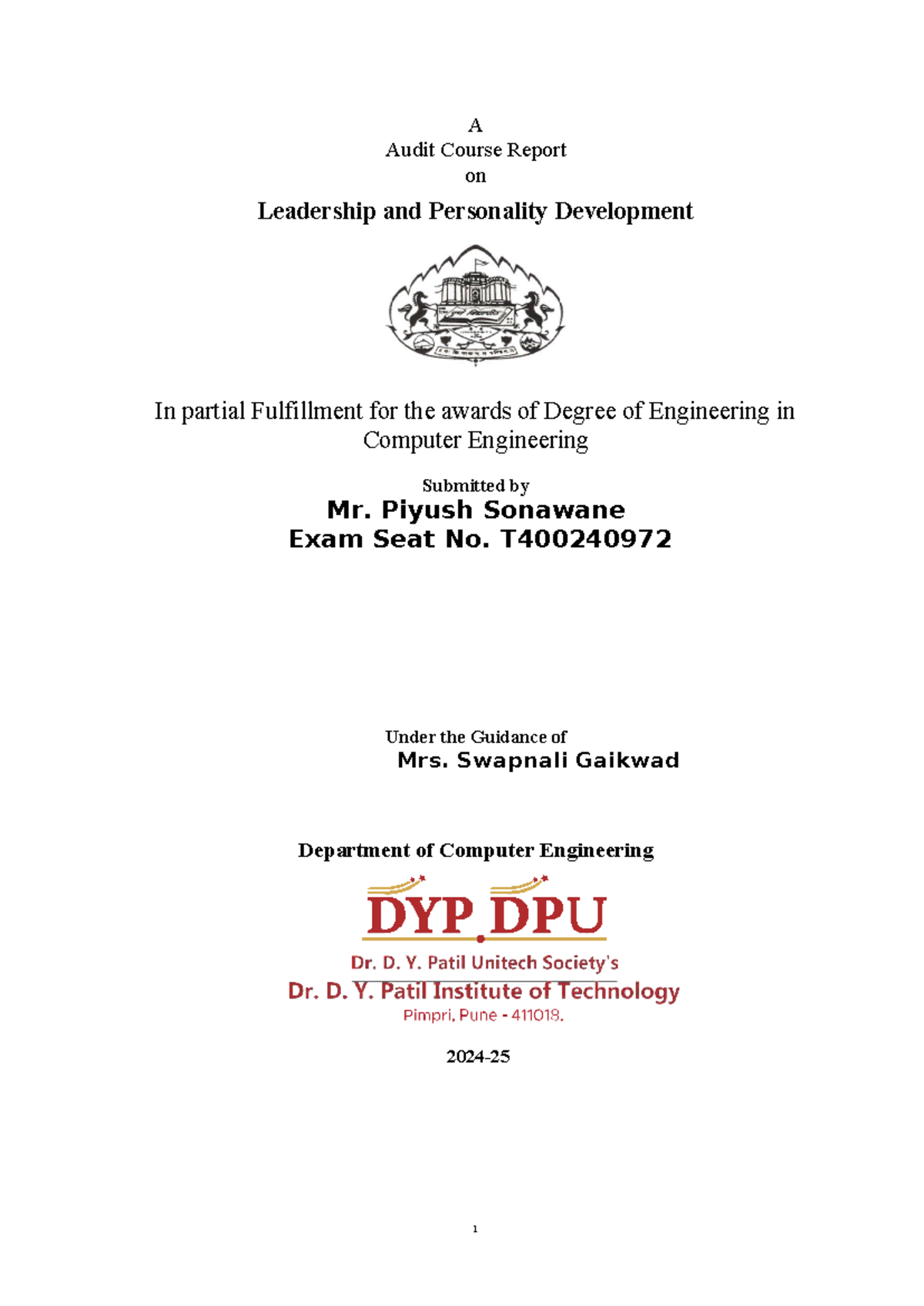 Audit Course Report: Leadership & Personality Development (CE 3rd Year ...