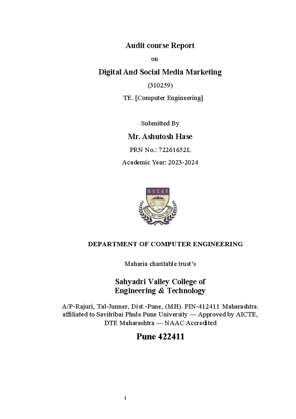 Audit Course Report on Digital & Social Media Marketing (310259) - Studocu
