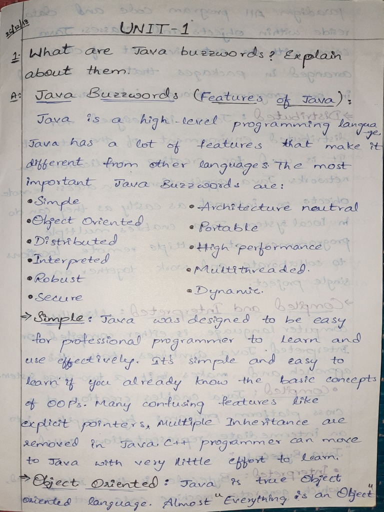 Java Notes UNIT I: History, Evolution, and Features of Java - Studocu