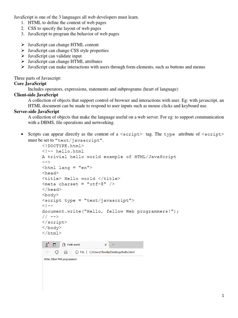 FOP - Java Script - Unit 1 | PDF | Java Script | Html