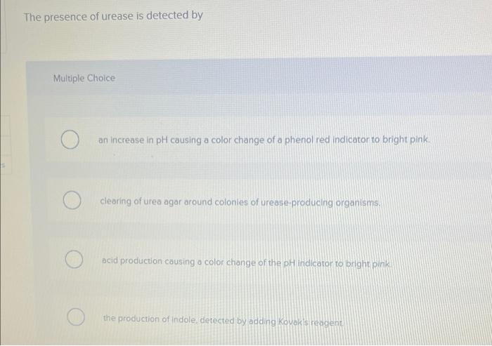 Solved The presence of urease is detected by Multiple Choice | Chegg.com