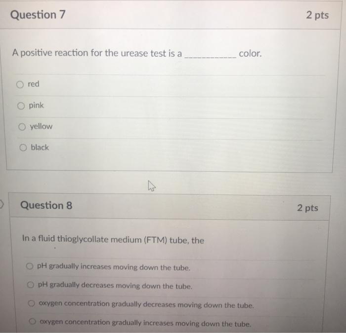 Solved Question 3 (1 point) 3. Which urea slant shows urea | Chegg.com