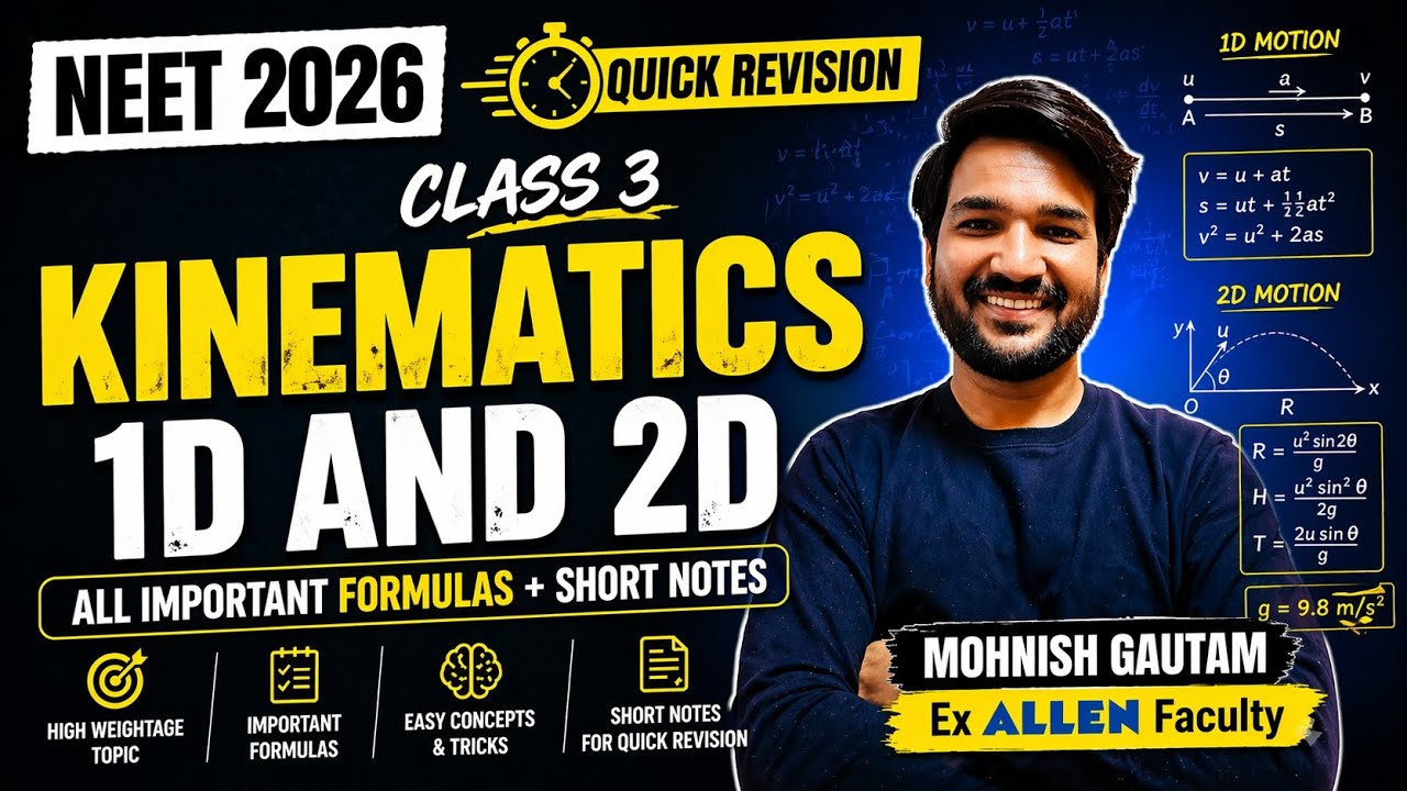 Kinematics Crash Course ⚡ 1D + 2D Motion | NEET 2026 Quick Revision ...