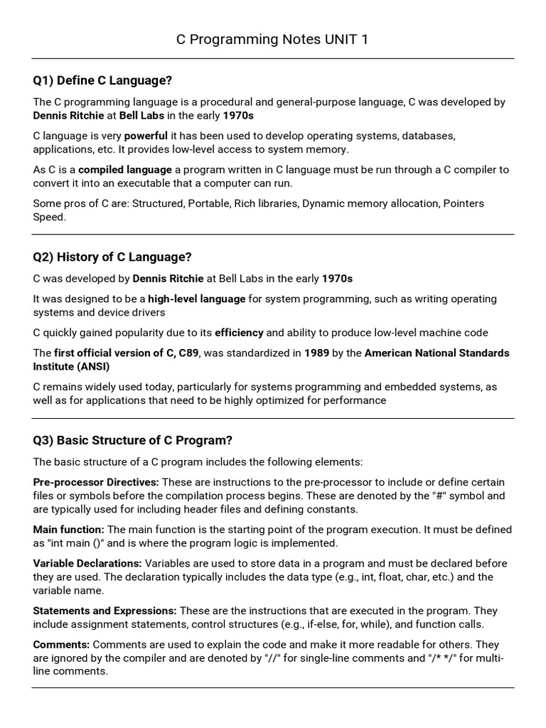 Programming Notes Unit 1 | PDF | C (Programming Language) | Programming ...