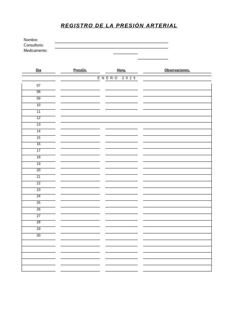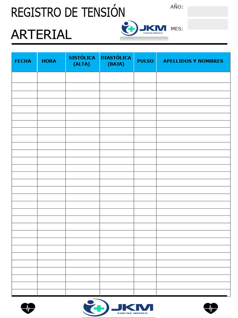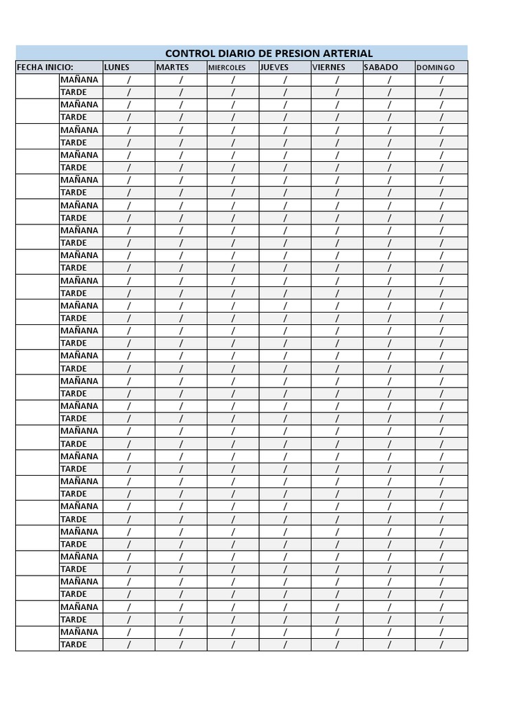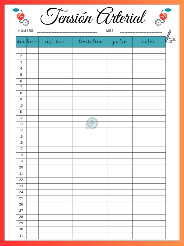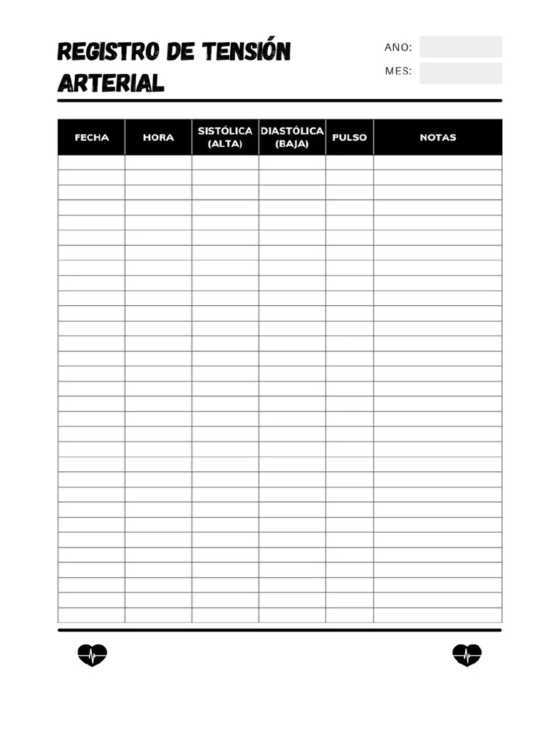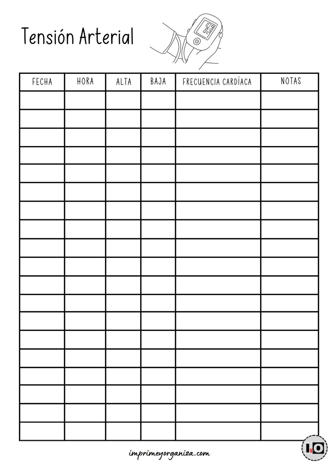 🩺 Plantilla de registro de tensión arterial para imprimir PDF