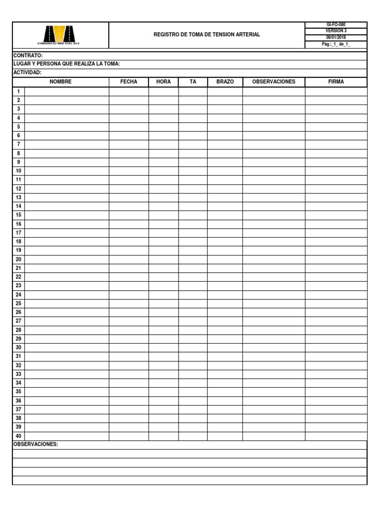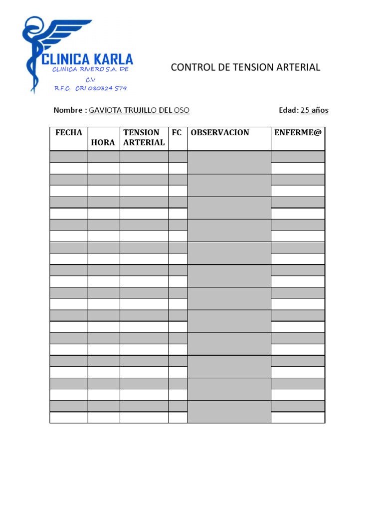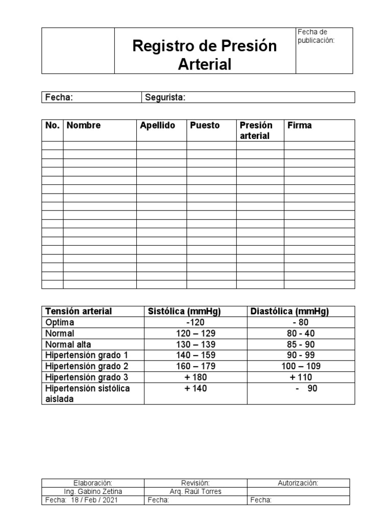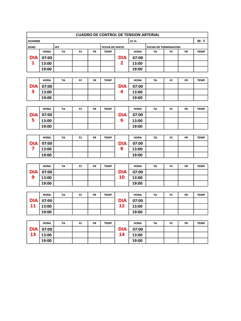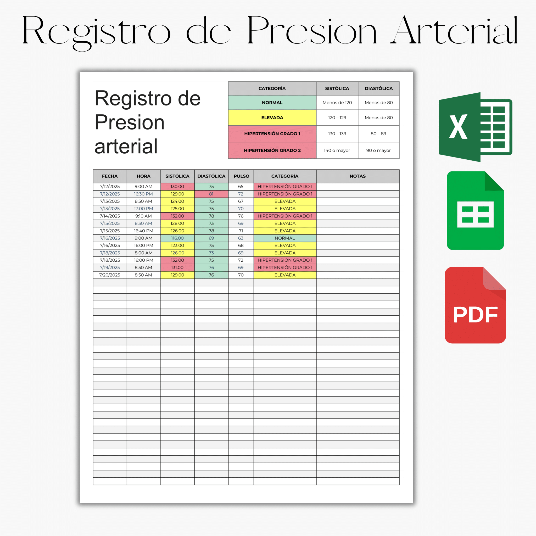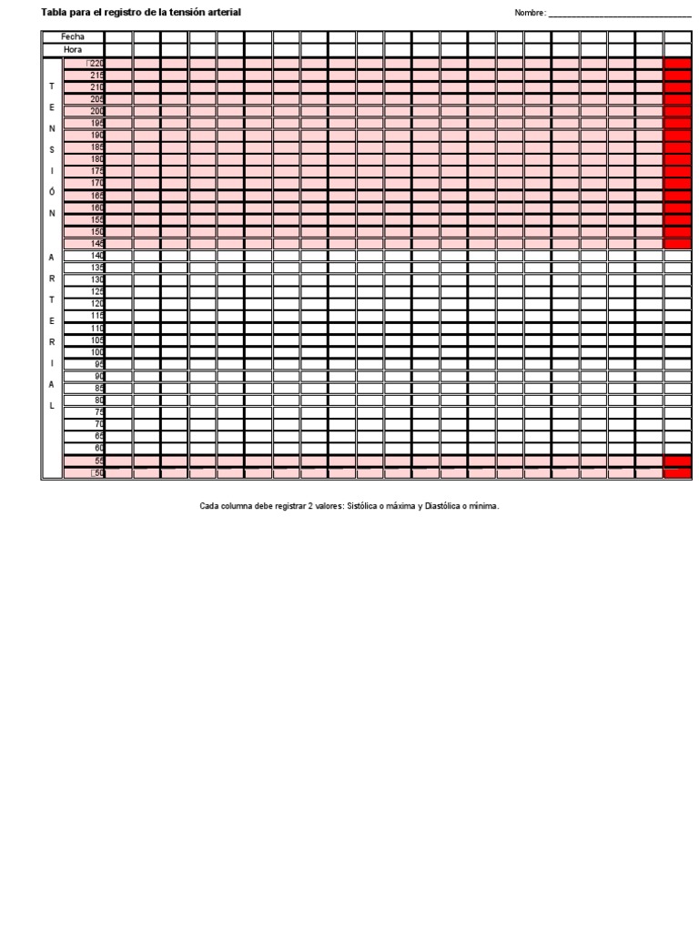 🩺 Plantilla de registro de tensión arterial para imprimir PDF