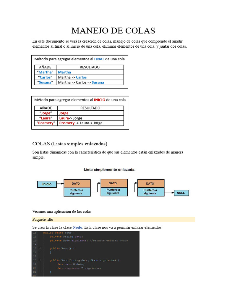 Colas en Java | PDF | Cola (tipo de datos abstractos) | Estructura de ...