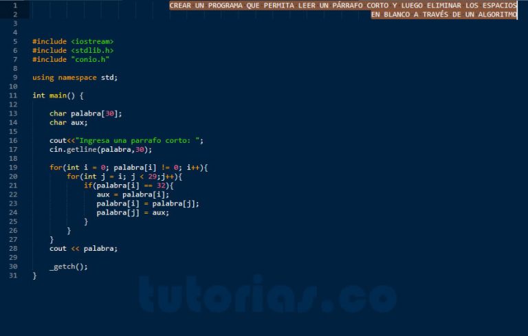 ciclo for – visual C++ (eliminar espacios en blanco) | Tutorias.co