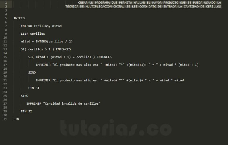 sentencia si-sino – pseudocodigo (la mayor multiplicacion metodo chino ...