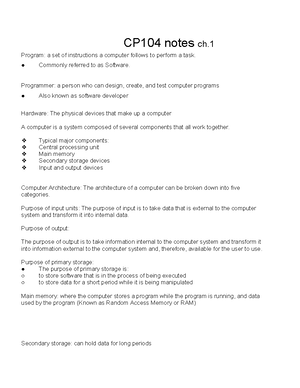 CP104 Midterm Notes - Chapter 1 - Introduction to Computers and ...