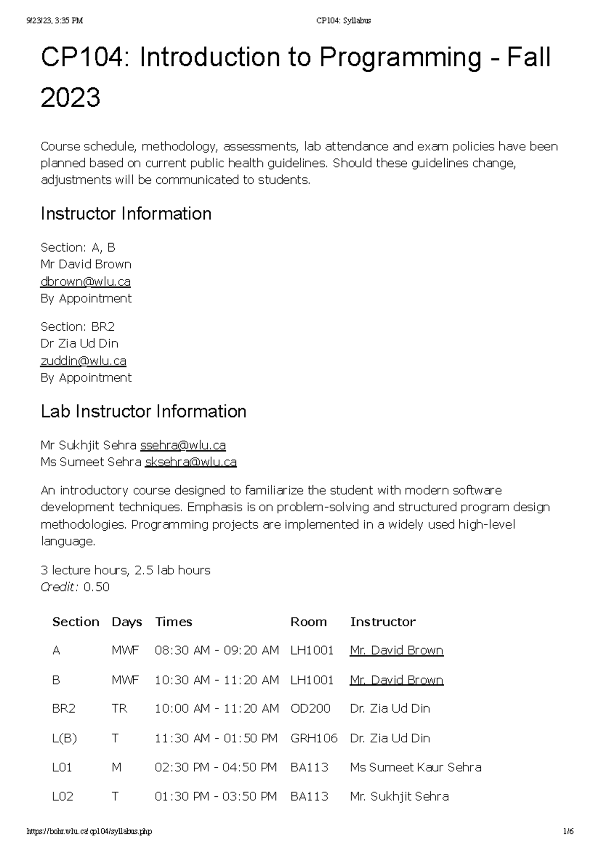 CP104 Syllabus - CP104: Introduction to Programming - Fall 2023 Course ...