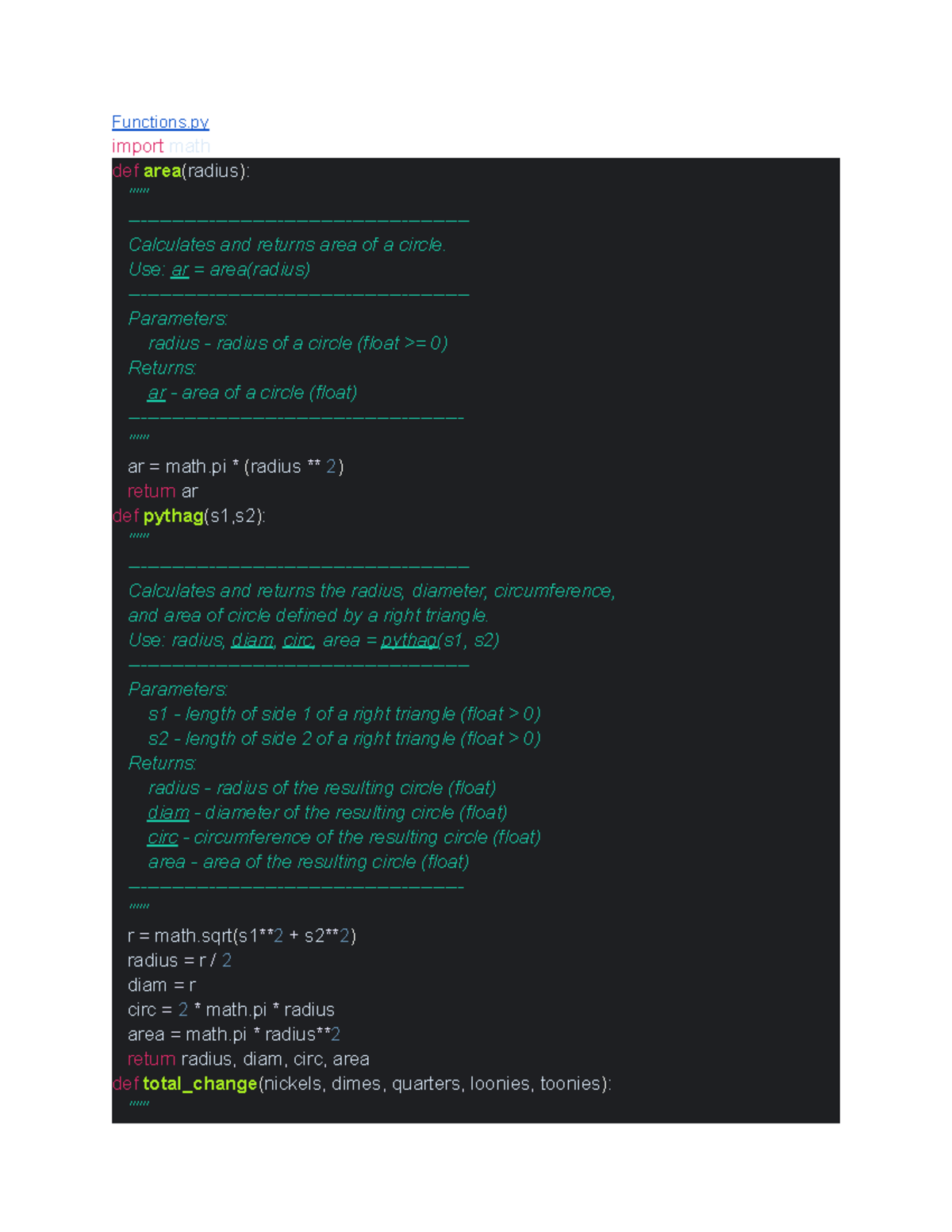 CP104 Lab 4: Functions for Area, Slope, and Coin Value - Studocu