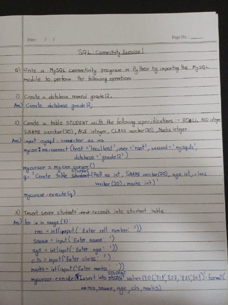 cs12 - Python Connectivity With SQL | PDF | Databases | Sql