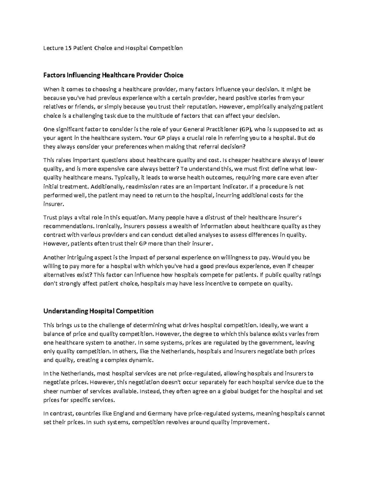 Lecture 15 Patient Choice and Hospital Competition - Lecture 15 Patient ...