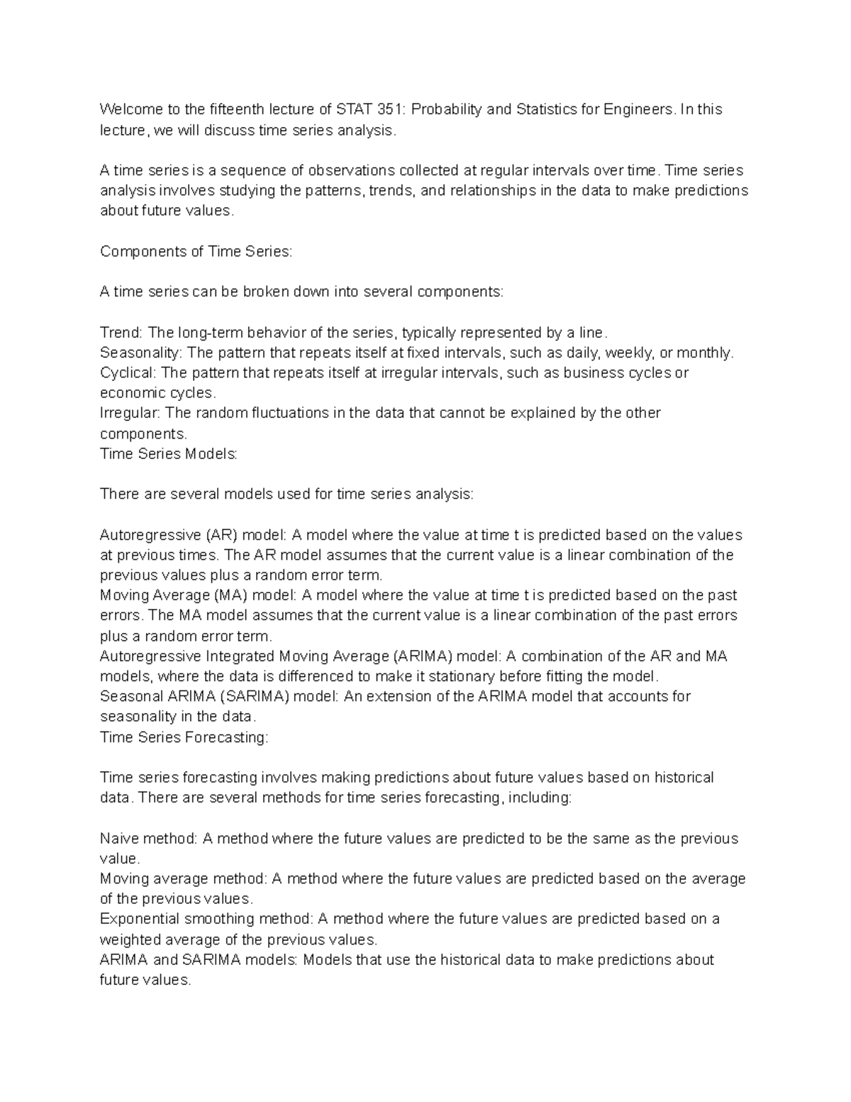 Lecture #15 Time Series Analysis - Welcome to the fifteenth lecture of ...