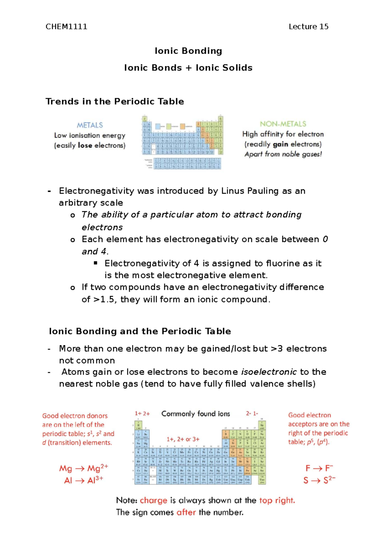 Lecture 15: Ionic Bonding, Lattice Energy & Periodic Trends - CHEM1111 ...