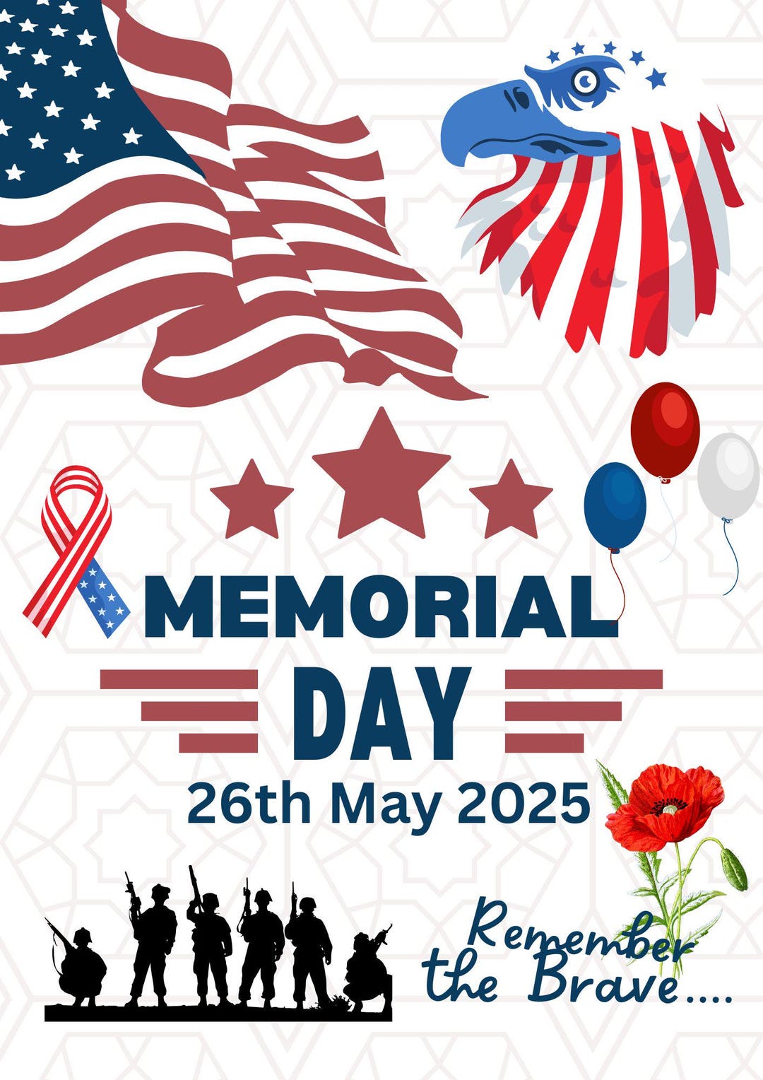 Red & Blue Illustrative Memorial Day 2025 A5 Template | PosterMyWall