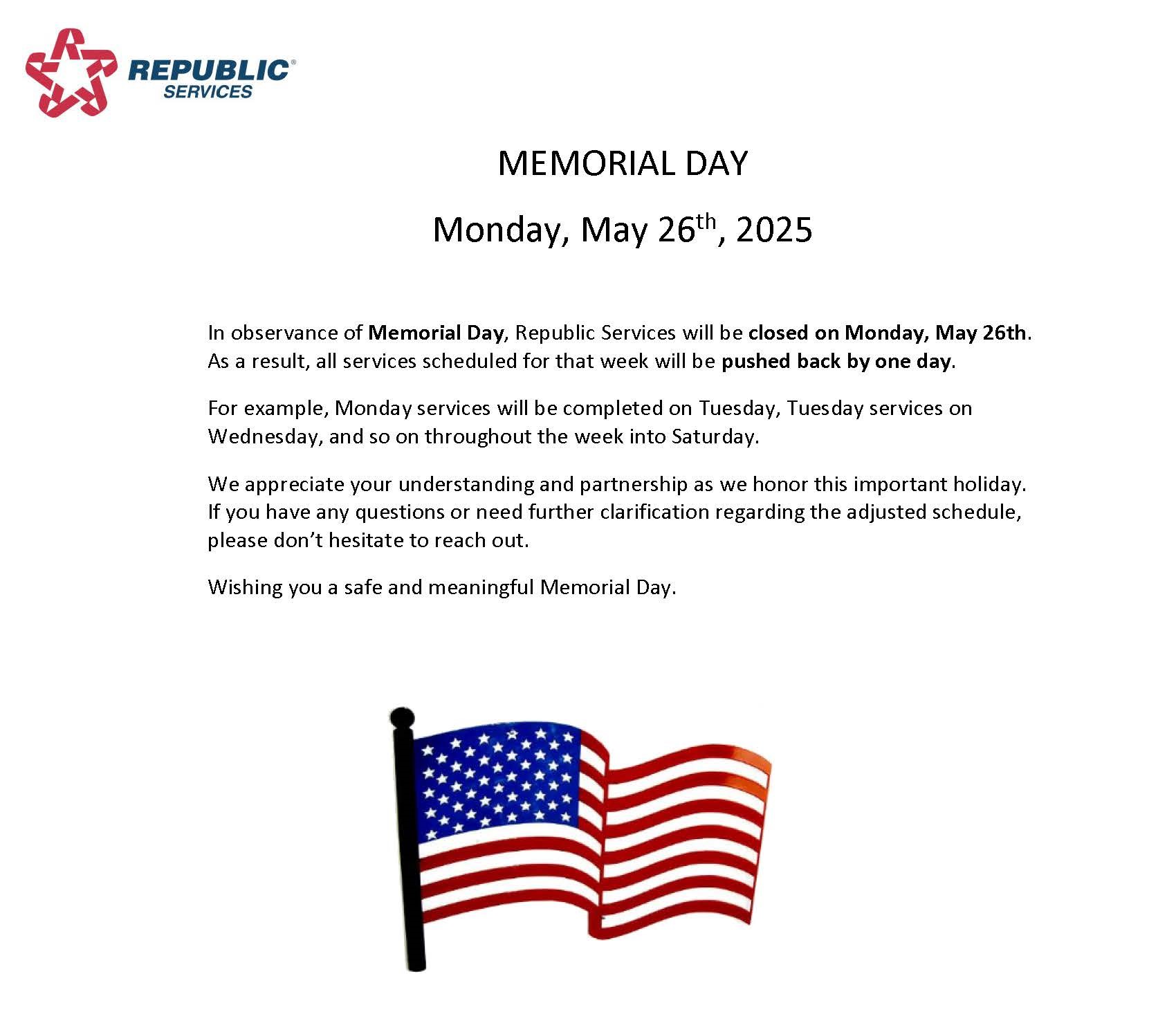 Memorial Day 2025 Holiday Schedule – Town of Dundee, Florida