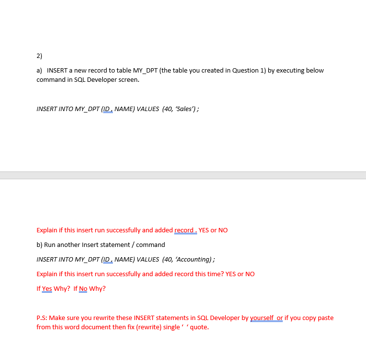 Solved 1. Create a table named MY_DPT based on the following | Chegg.com