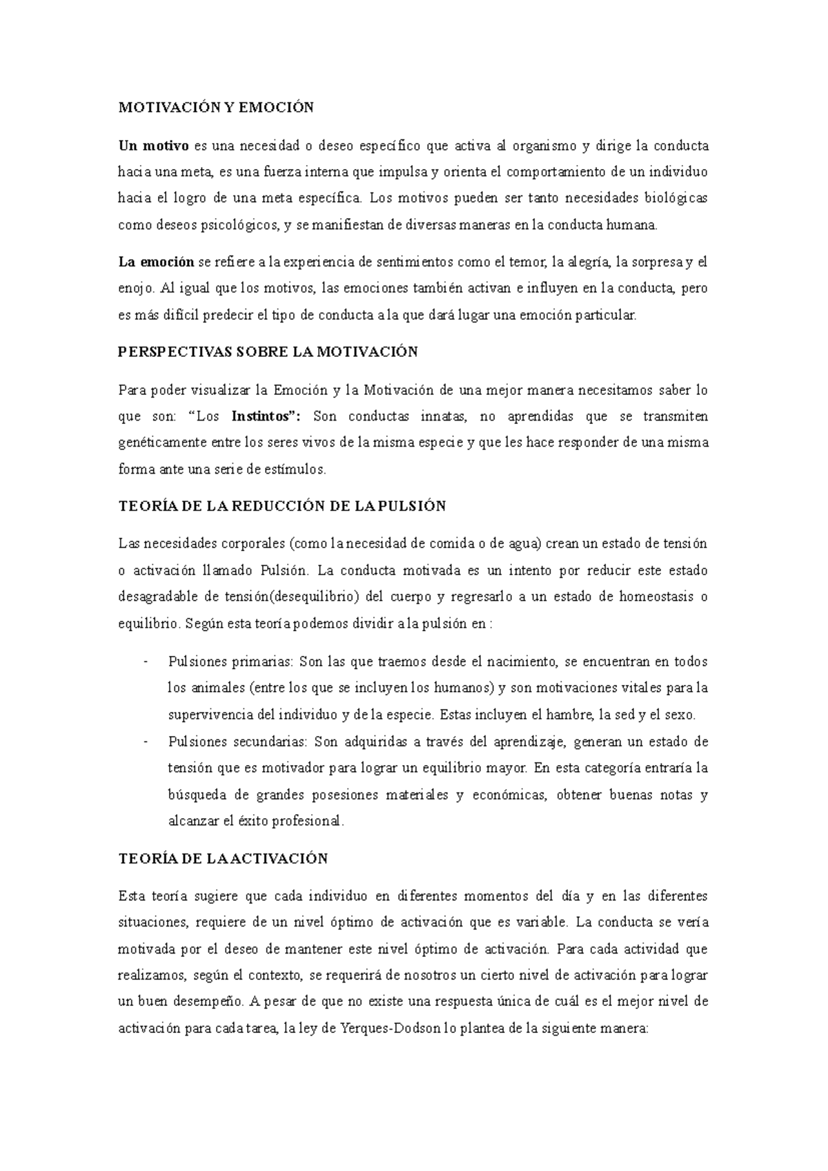 Resumen Final de Motivación y Emoción - Psico 101 - Studocu
