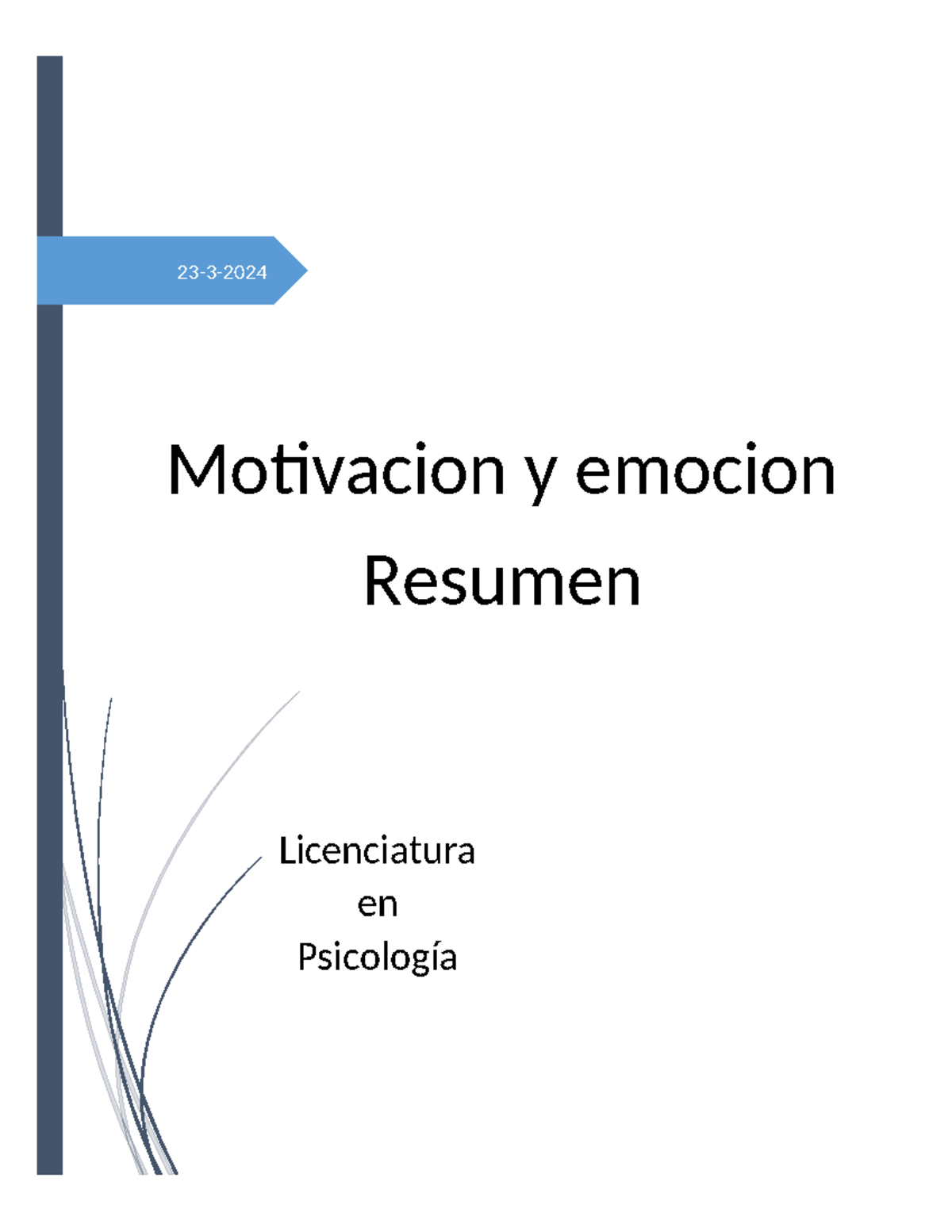 Motivación y emoción - 23-3- Motivacion y emocion Resumen Licenciatura ...