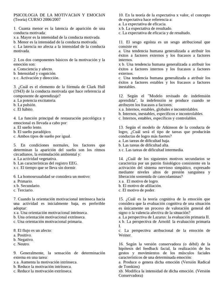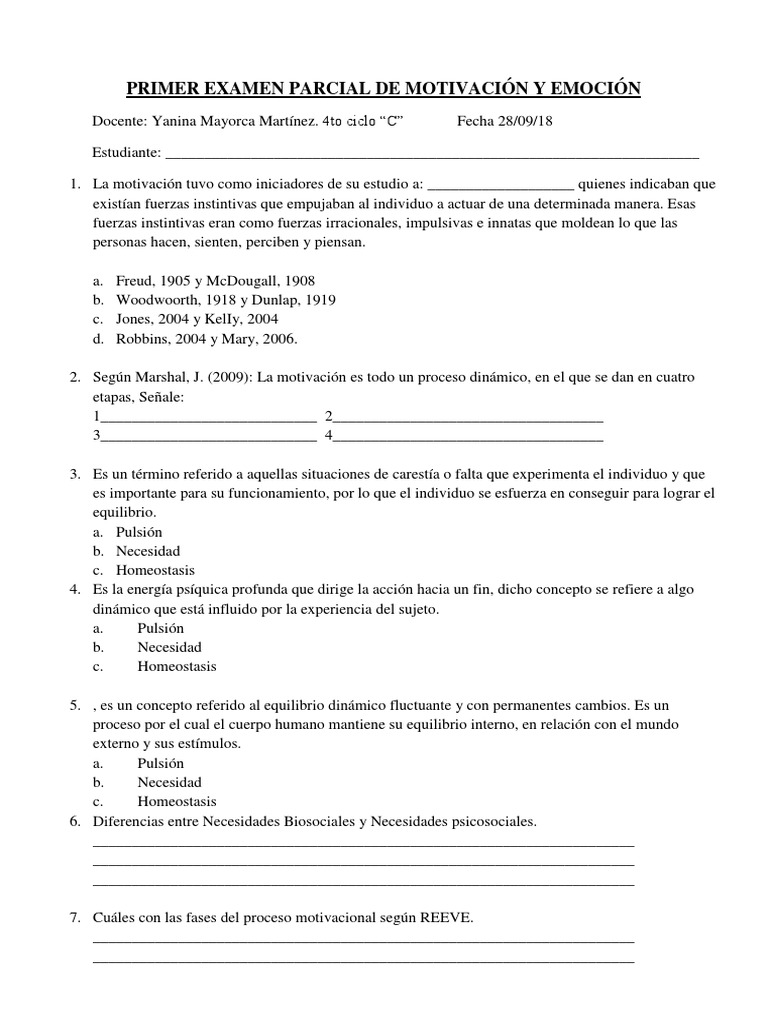Primer Examen Parcial de Motivación y Emoción | PDF | Motivación ...