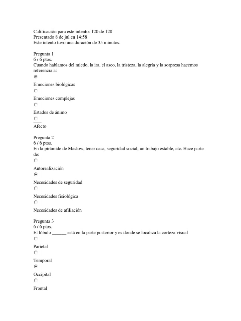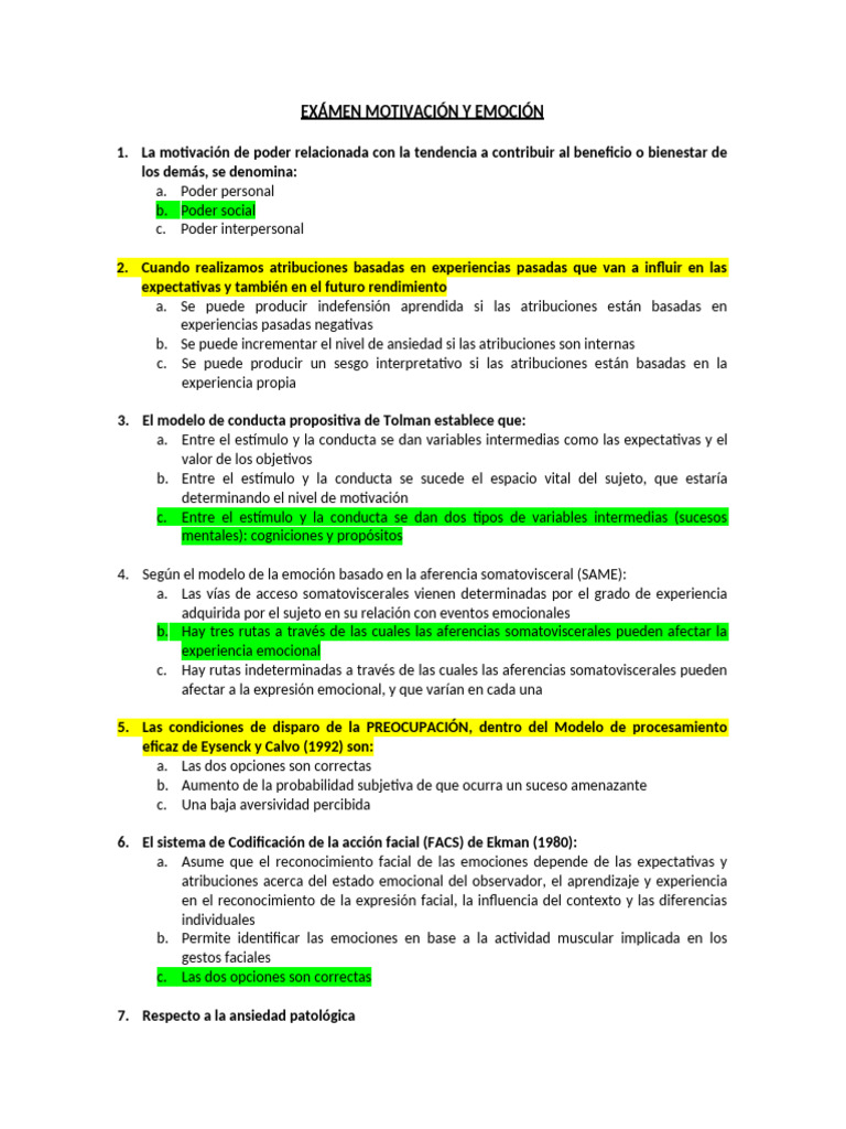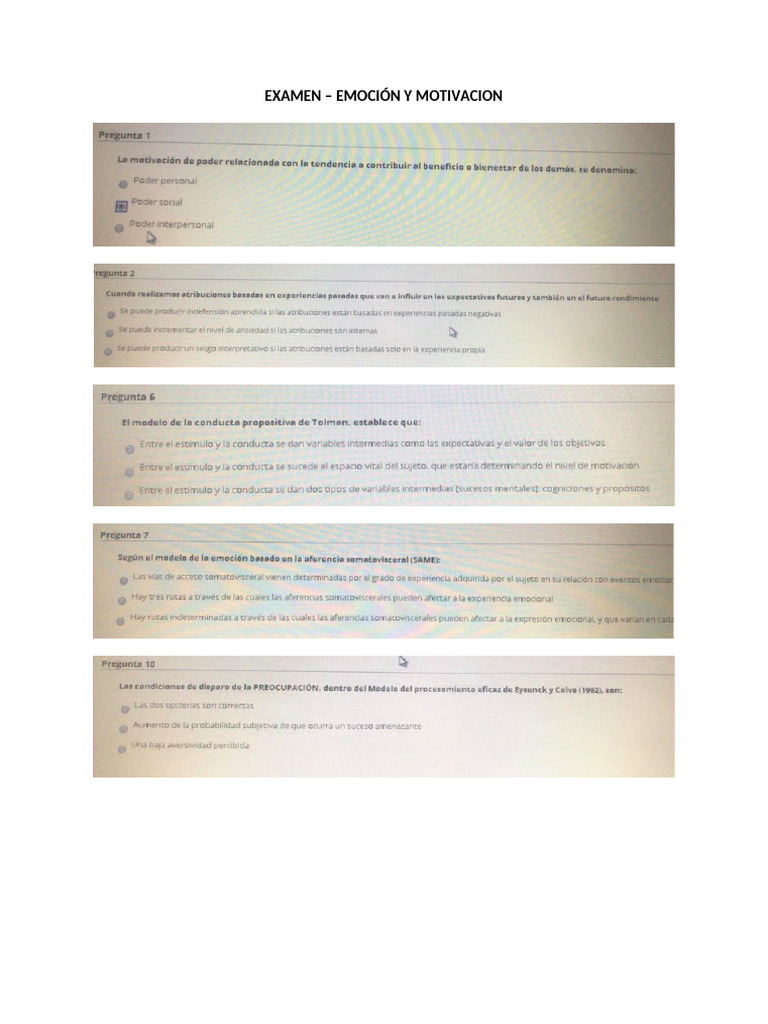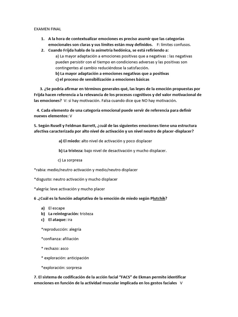 Examen Completo Emocion y Motivacion Copie | PDF | Las emociones ...