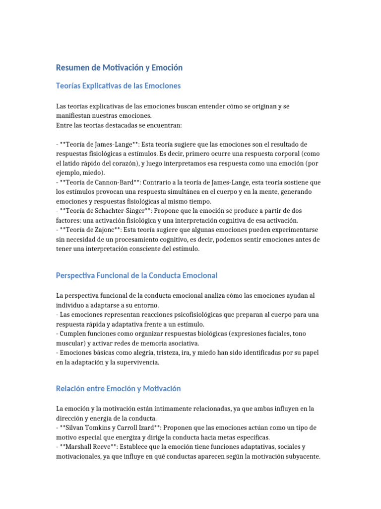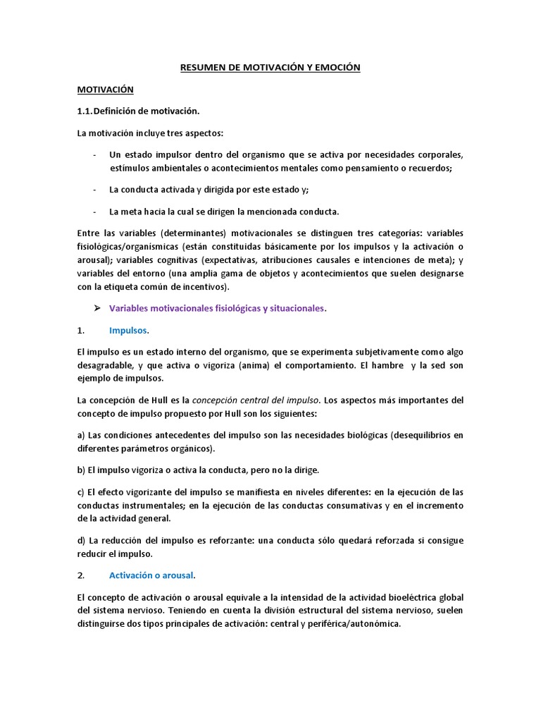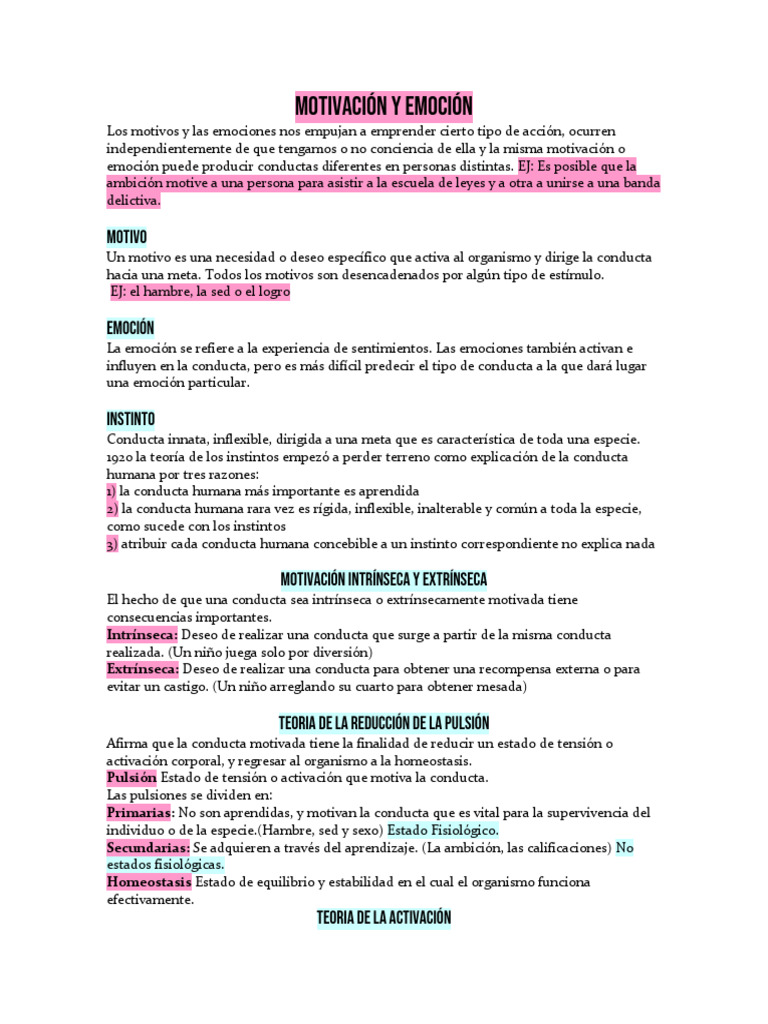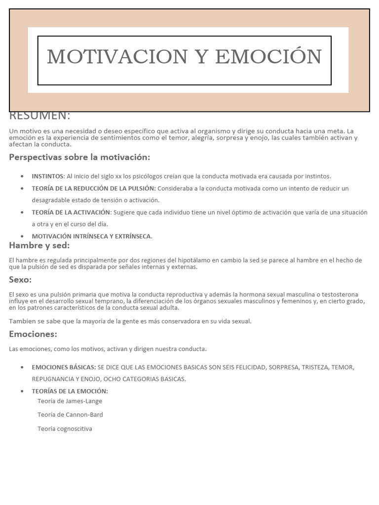 Resumen del Capítulo 1: Motivación y Emoción | PDF | Motivacional ...