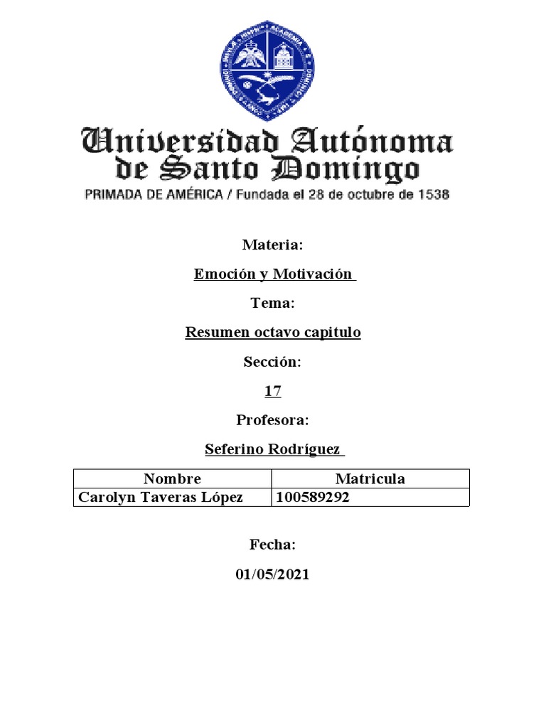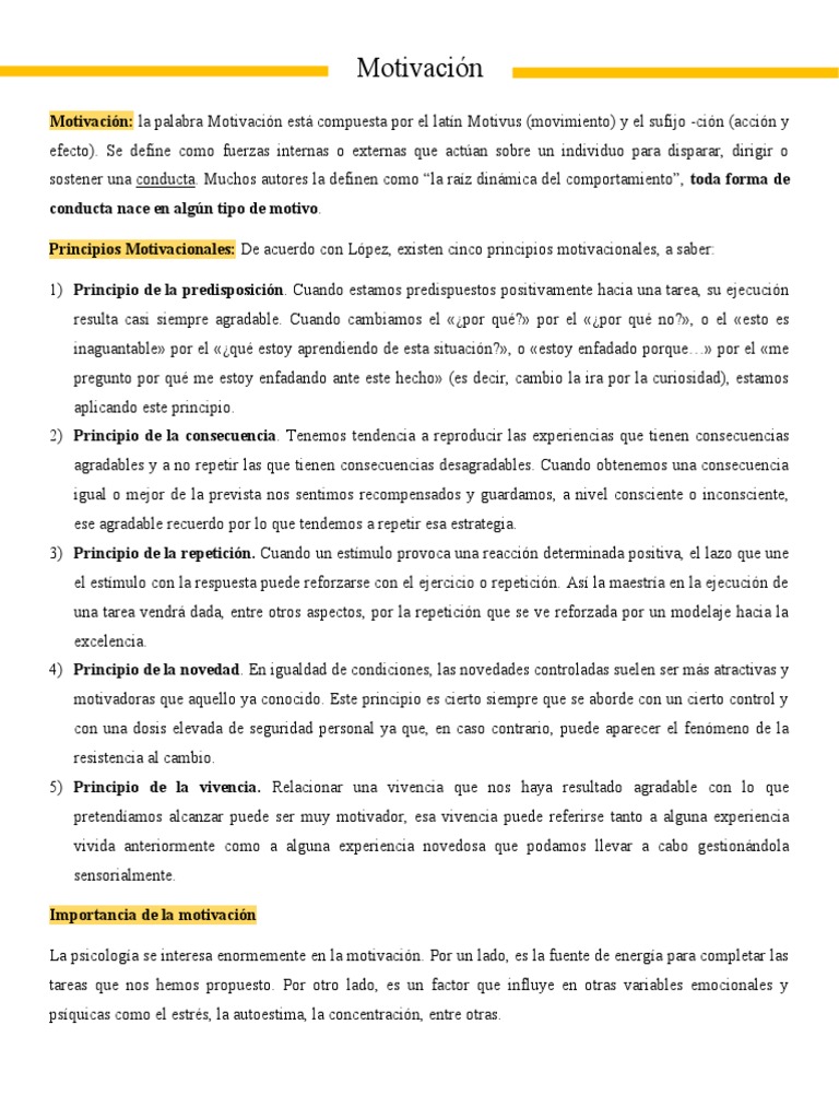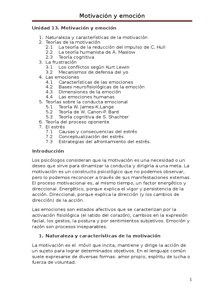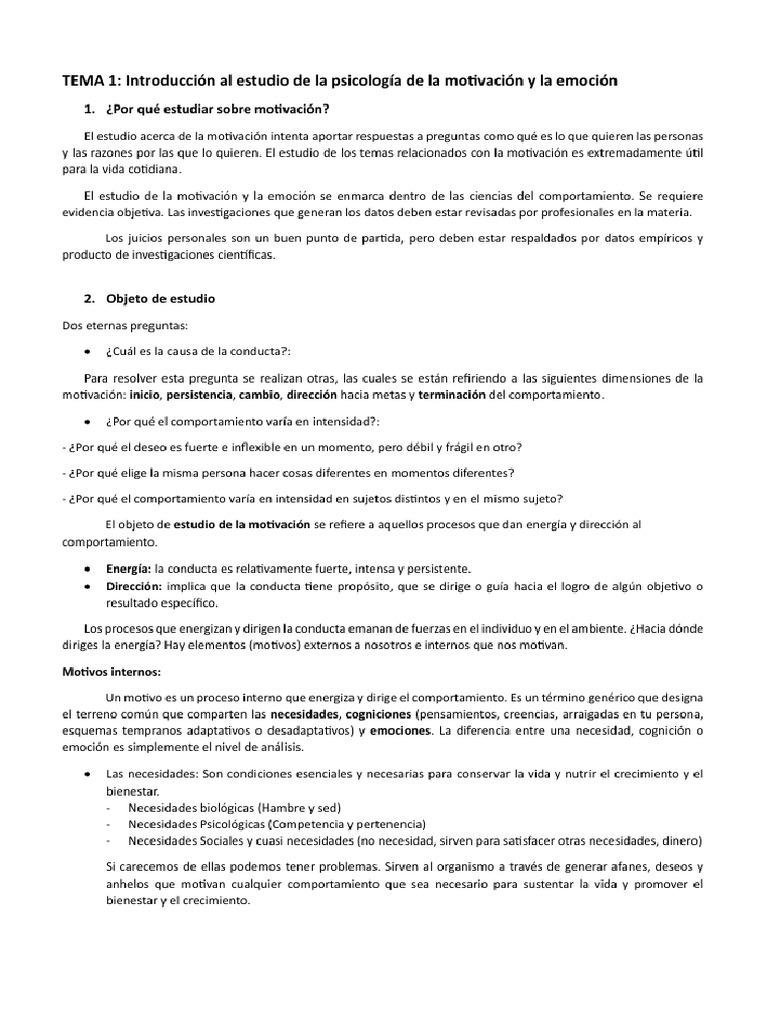 Resumen del Capítulo 1: Motivación y Emoción | PDF | Motivacional ...
