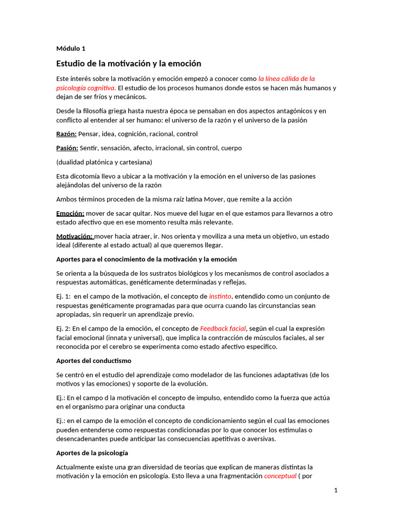 Módulo 1 Motivación y Emoción | PDF | Las emociones | Sicología