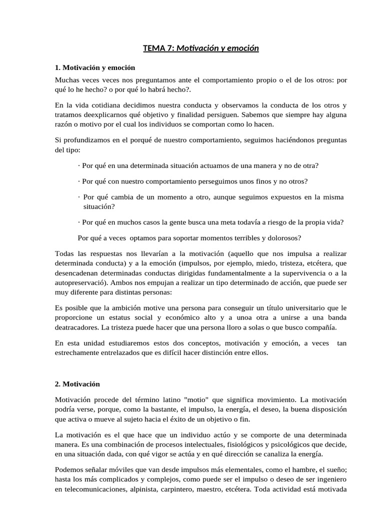 Motivación Y Emoción - resumen del tema 7 de psicologia motvivacion y ...