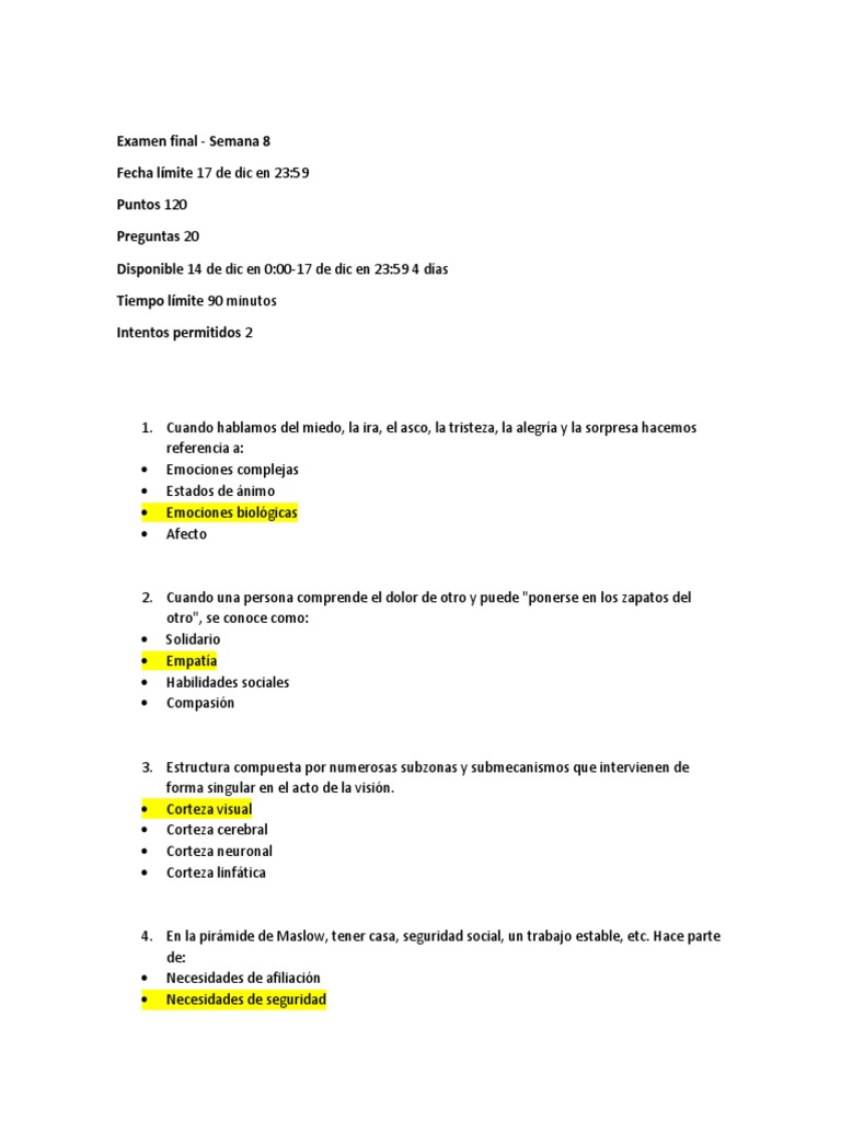 MOTIVACION Y EMOCION - Examen Final - Semana 8 | PDF | Inteligencia ...