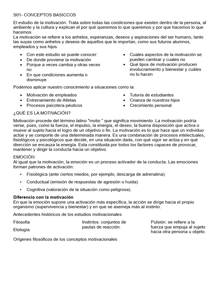 Motivación y Emoción: Conceptos Clave | PDF