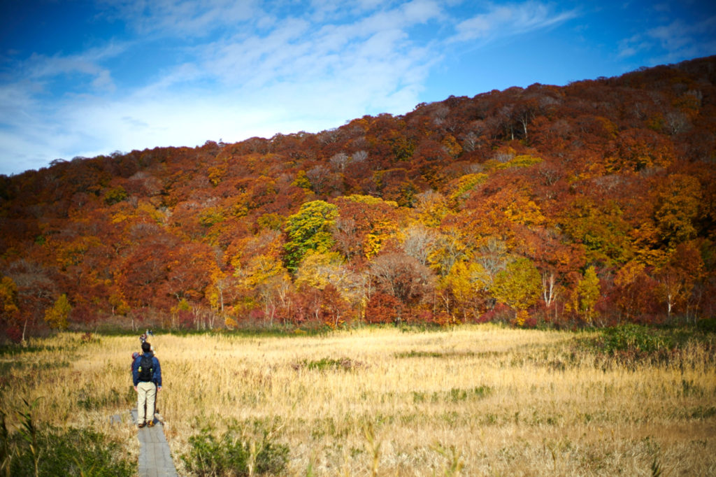 黄金色のブナ林を歩く、秋の白神山地ハイキング