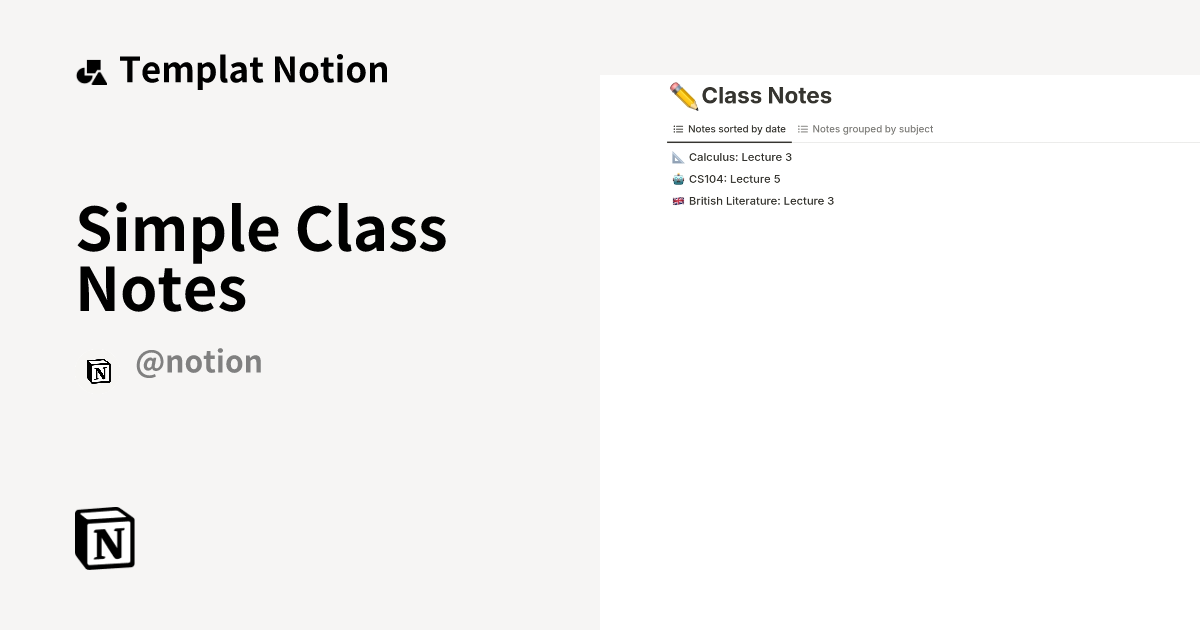 Simple Class Notes Templat oleh Notion | Notion Marketplace