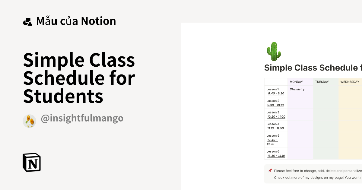 Simple Class Schedule for Students Mẫu do Insightful Mango tạo | Thị ...