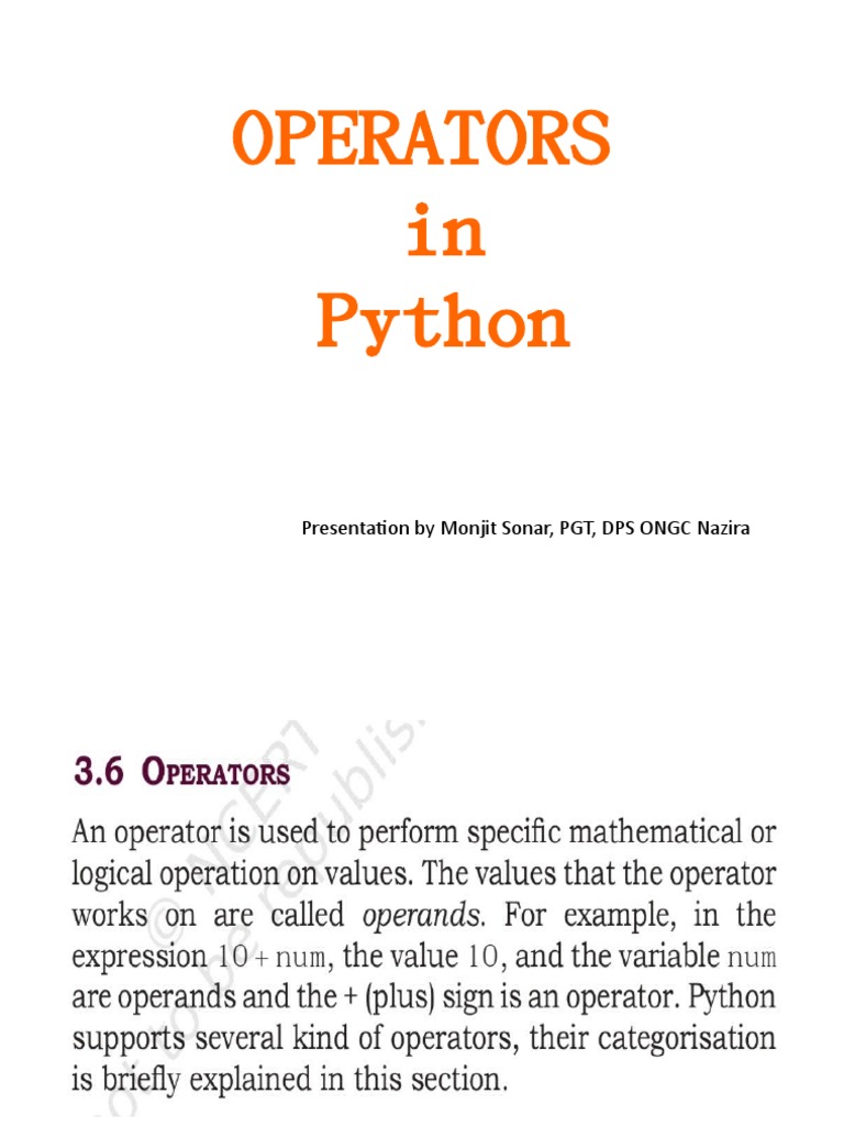 [Class 11] Operators: Performing Operations in Python - Concepts