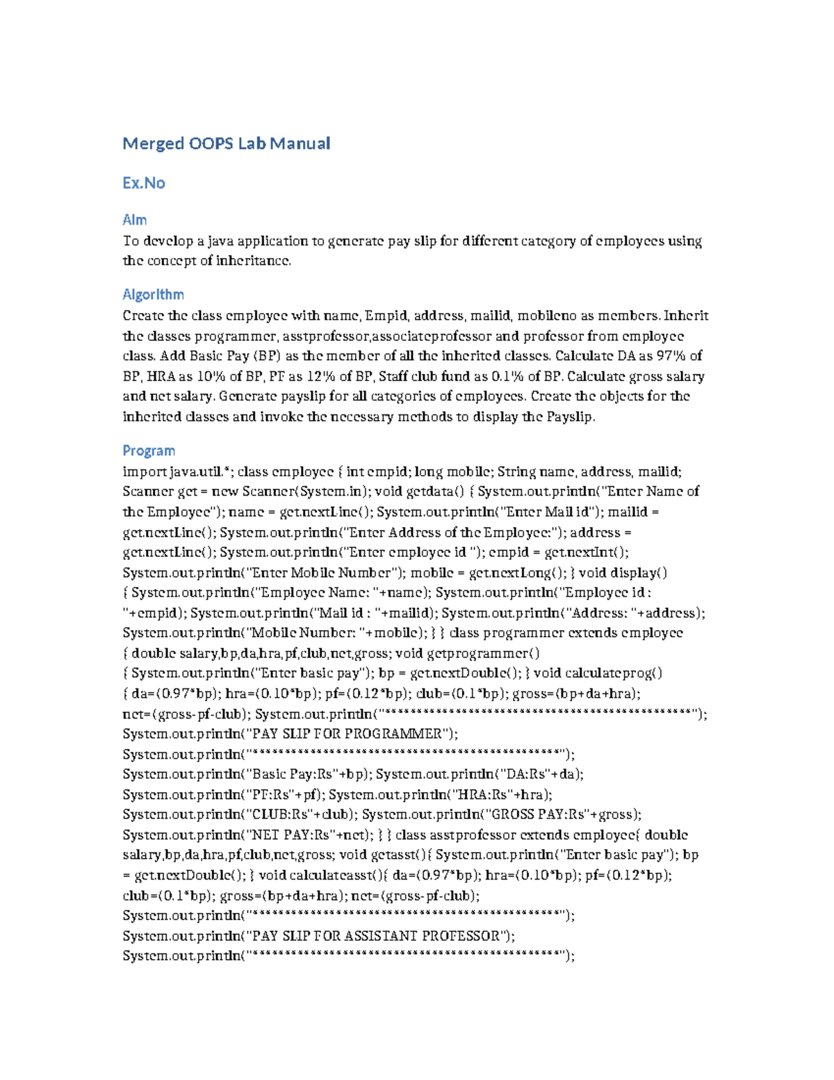 CS3391-OOPS LAB Experiment Manual for Java Programming - Studocu