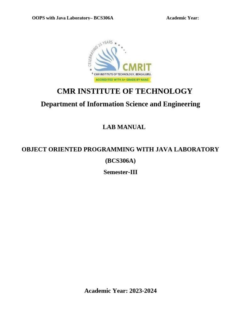 Laboratory Manual for Object Oriented Programming with Lab BCS306B ...