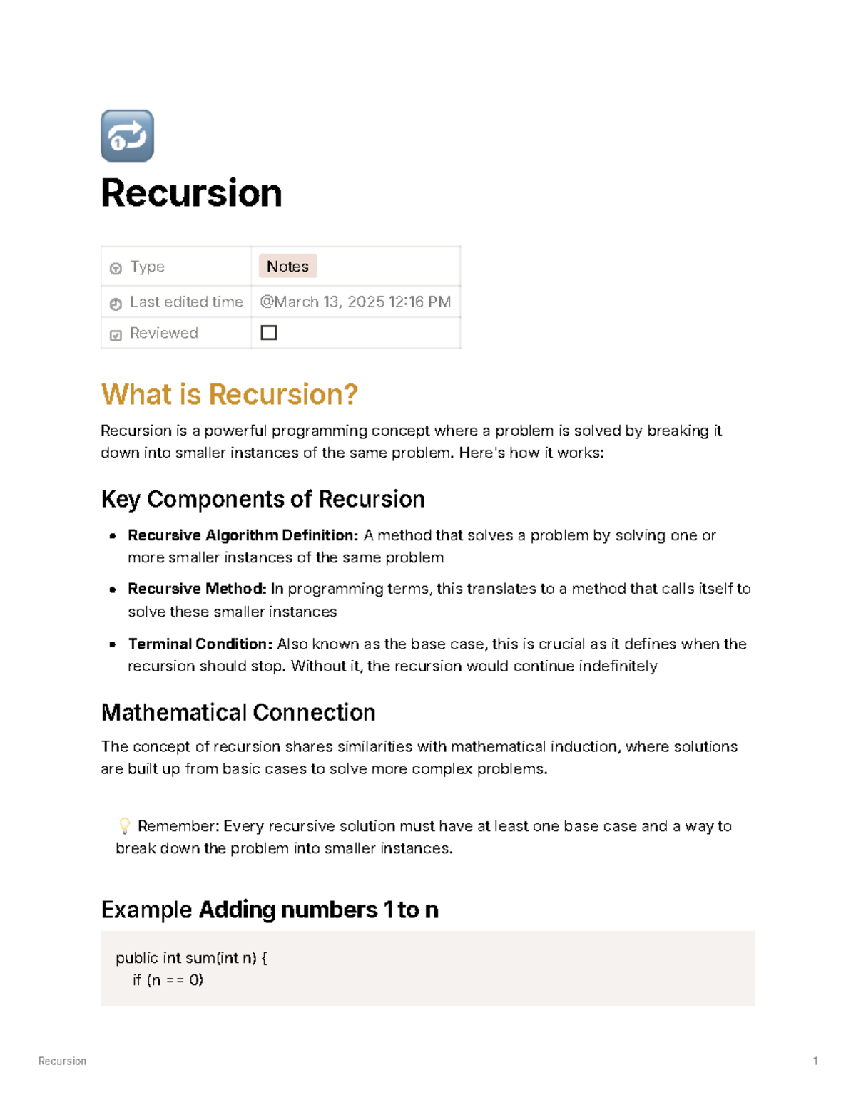 Recursion - π Recursion Type Notes Last edited time Reviewed What is ...