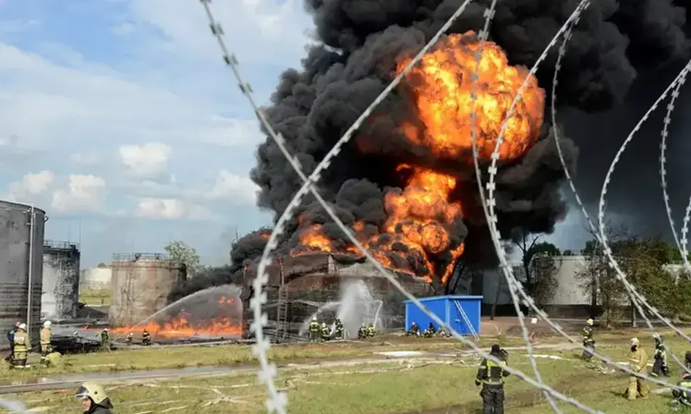 Ukrainian drones ignite massive fires in Russian oil facilities