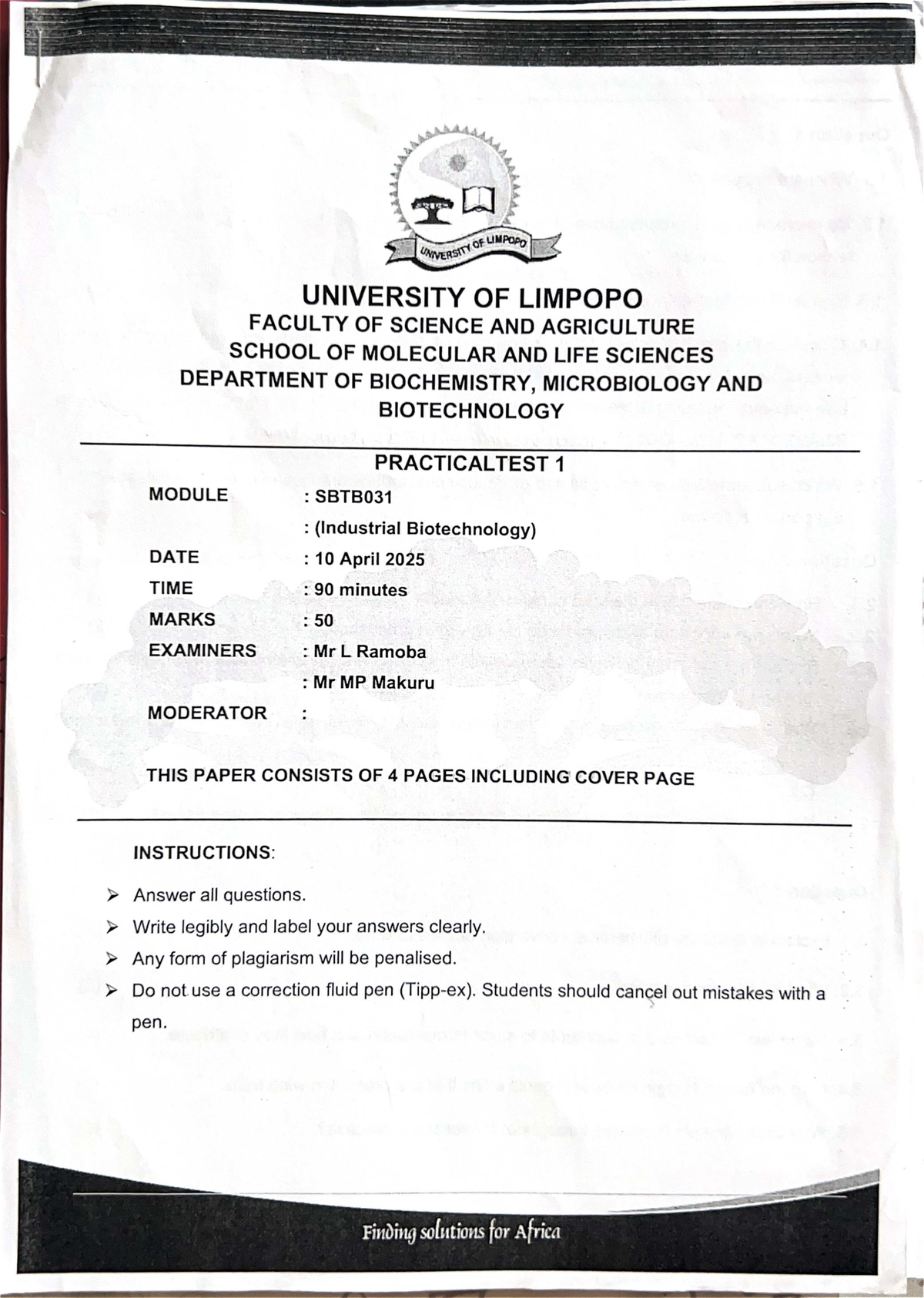 SBTB031 Practical Test 1 - Industrial Biotechnology Insights 2025 - Studocu