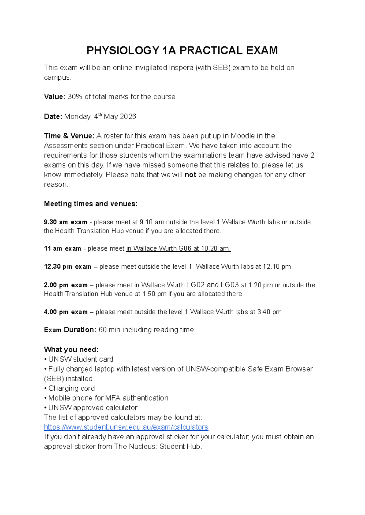 PHYSIOLOGY 1A PRACTICAL EXAM DETAILS & PREPARATION GUIDE - Studocu
